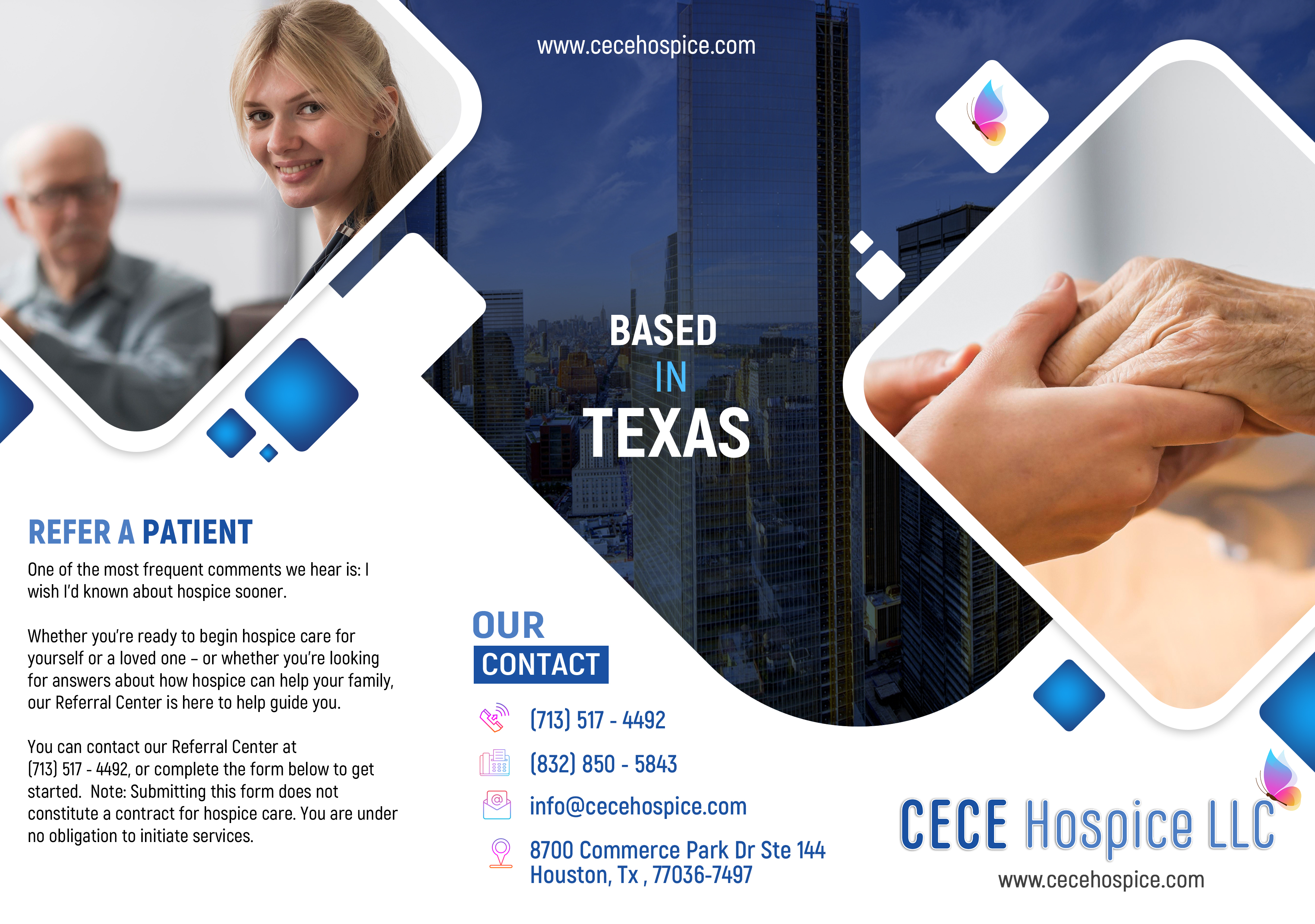 At CECE Hospice, we build a consistent care team for each patient as well as their family. This unique patient-centered approach is the reason why we are the preferred provider for so many families across Houston.